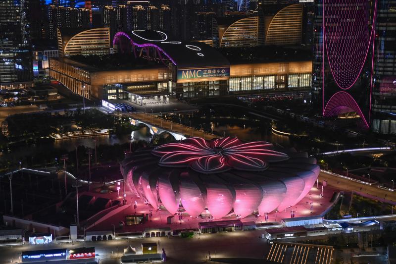杭网所有比赛都在为杭州亚运会网球比赛新建的场地——杭州奥体中心网球中心(俗称“小莲花”)进行。“小莲花”可容纳1万人,8片可旋转的“大花瓣”具有 “旋转开闭屋盖”功能,每片“大花瓣”重160吨,可在20分钟内完成开合,这样赛事基本不会受风雨影响。杭网第一天,“小莲花”遭遇急雨,志愿者用毛巾擦地,顶棚闭合后,赛事很快恢复。这个视频被频频转发。