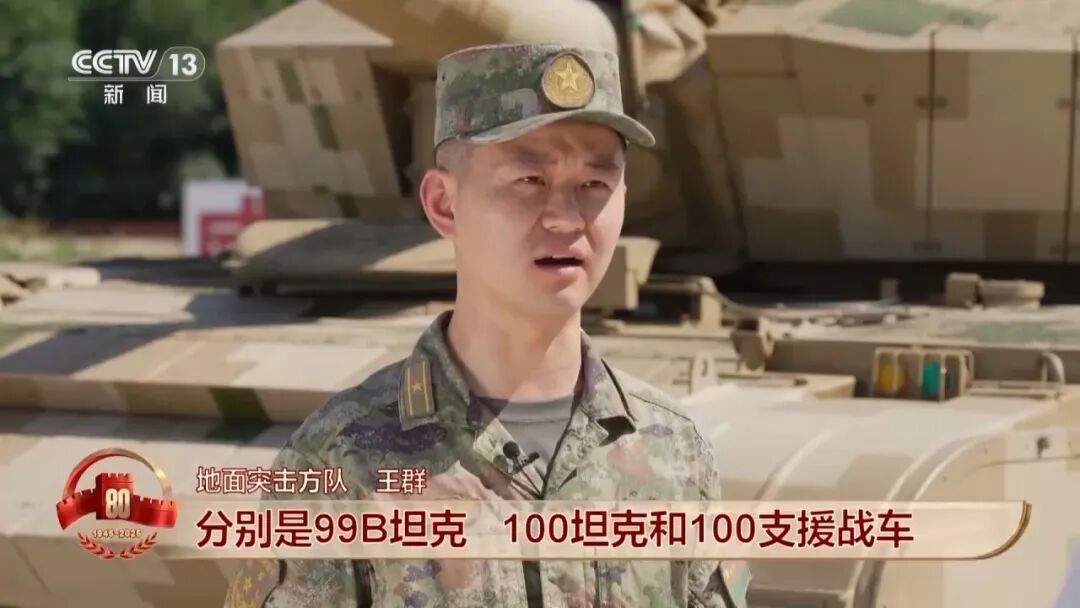 地面突击方队 王群:此次受阅一共有三型装备,分别是99B坦克、100坦克和100支援战车,它们都是我军高技术装备体系的重要组成部分,99B坦克是基于99A坦克的改进型,100坦克和100支援战车是陆军未来战场的核心力量。