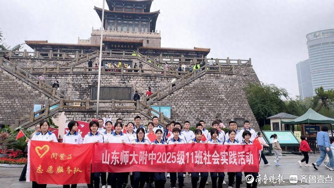 近日,壹点公益联合闫紫涵志愿服务队组织山东师范大学附属中学2025级11班全体同学走进济南解放阁,开展“探寻红色足迹 赓续红色血脉”主题志愿服务活动。同学们聆听革命故事、瞻仰珍贵史料,在一言一行中延续精神力量。